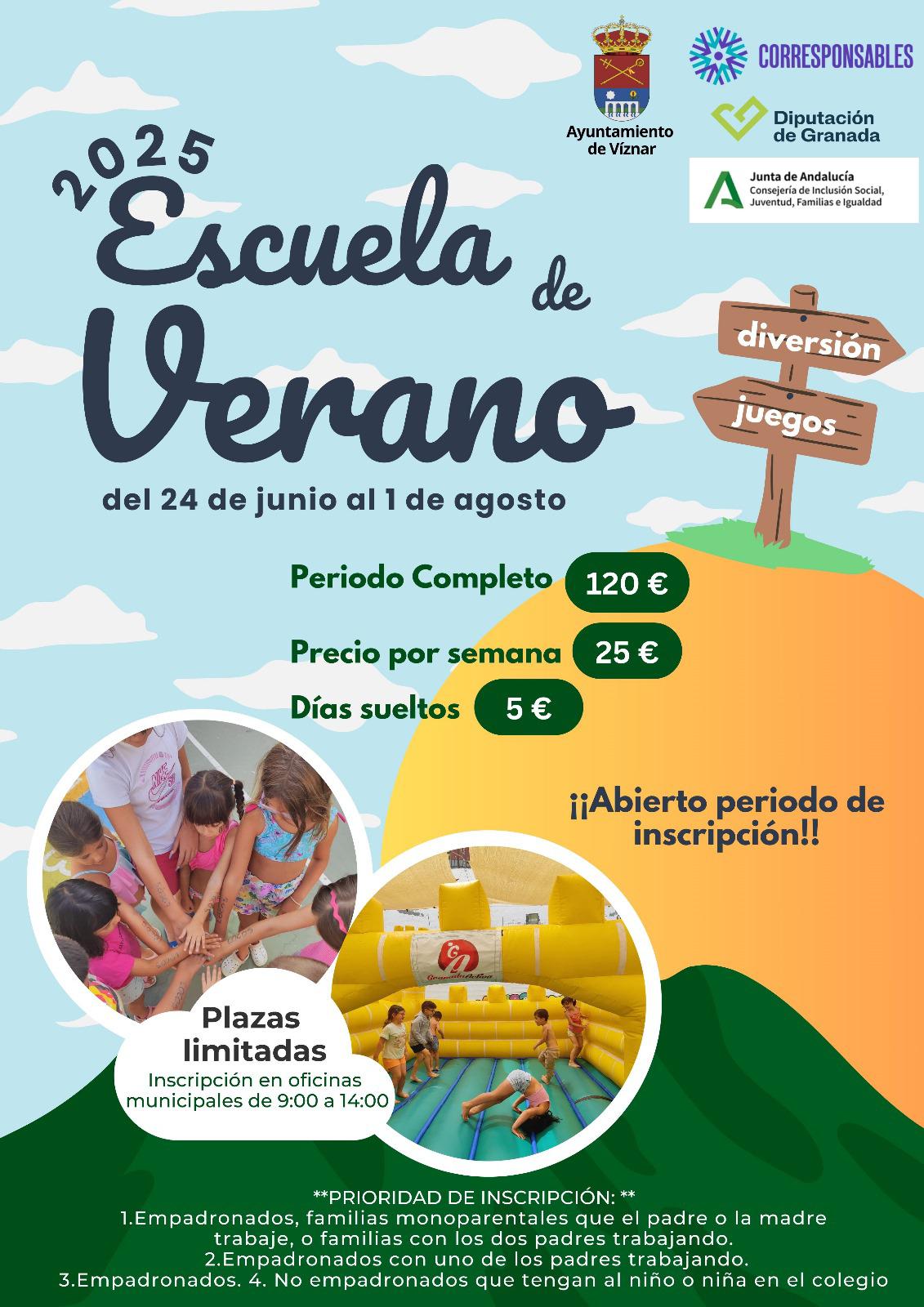 *INFORMACIÓN ESCUELA DE VERANO*: Edades: desde los 3 años (sin pañal) hasta los 12 años (que los cumplan en 2025). Será necesario adjuntar a la solicitud algún documento que acredite la situación laboral de padres/madres. El pago del precio público es en efectivo por caja municipal. El horario es de 9:00 a 14:00 horas pero existe la posibilidad de aula de 8:00 a 9:00 horas y también de 14:00 a 15:00 horas, este servicio será abonado a parte directamente a la empresa que presta el servicio por los padres/madres que lo necesiten. Adjunto tabla de precios para este servicio.